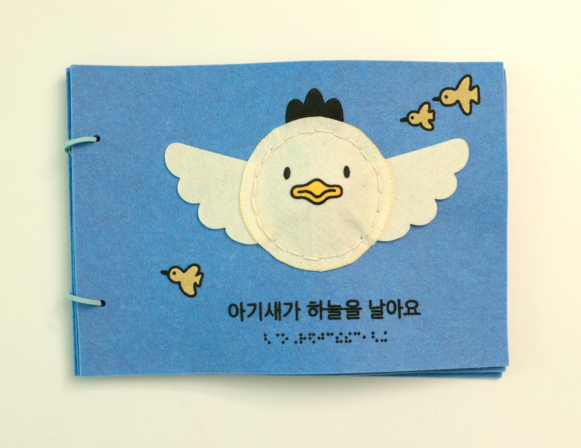 아기새 점자촉각책은 시각장애아동들을 위해 손바느질로 만든 점자촉각 감각을 배우면 놀이하는 책입니다.