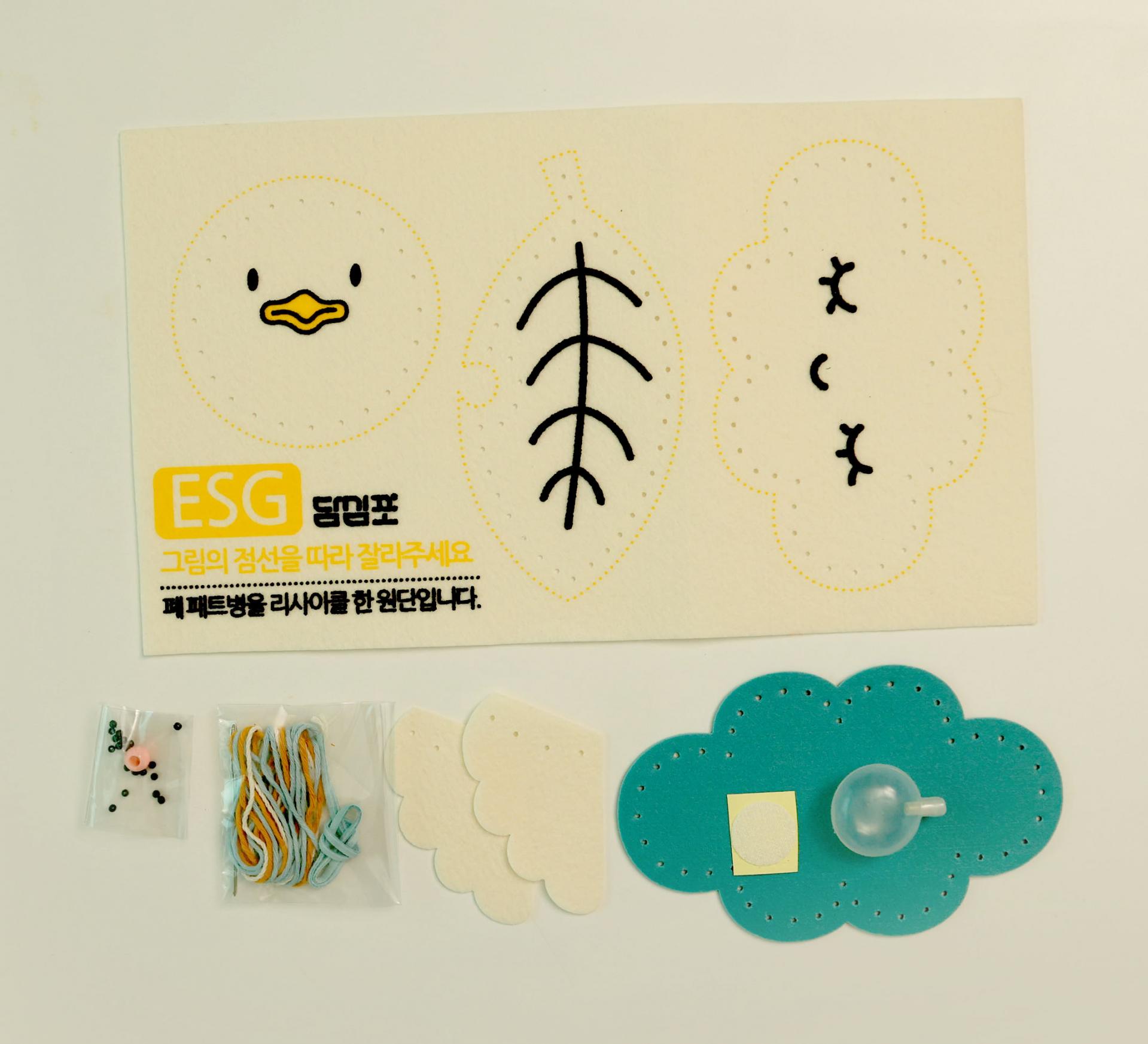 아기새의 원단은 폐 페트병을 리사이클링한원단이며 안전검사를 통과한 원단입니다.