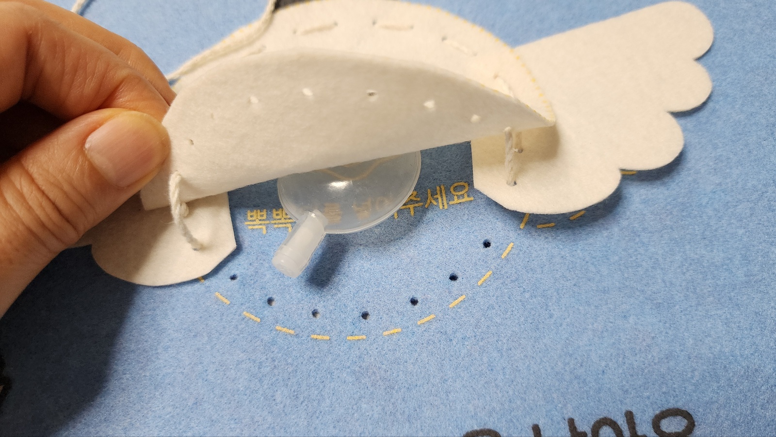 (바느질하는 구멍을 따라 바느질하면 됩니다. 쉽고 재미있게 시각장애아동들에게 필요한 재미있는 점자촉각책을 만들수 있습니다.)